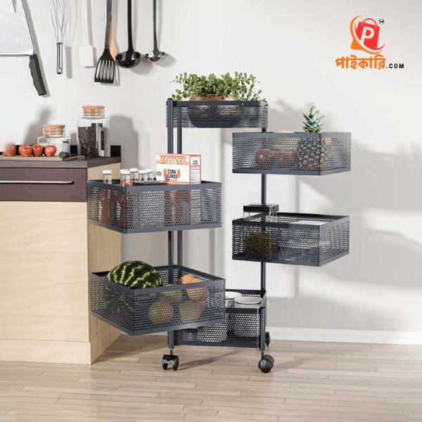 ফল, সবজি, পেঁয়াজ, আলু, স্ন্যাকস বা কিচেন আইটেম—প্রতিটি জিনিস আলাদা লেয়ারে সুন্দরভাবে রাখুন।