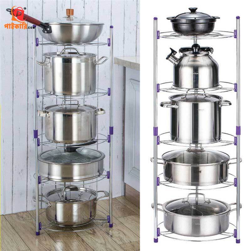 একাধিক স্তরে বিভক্ত, পাত্র, হাঁড়ি ও প্যান সুশৃঙ্খলভাবে রাখার সুবিধা।